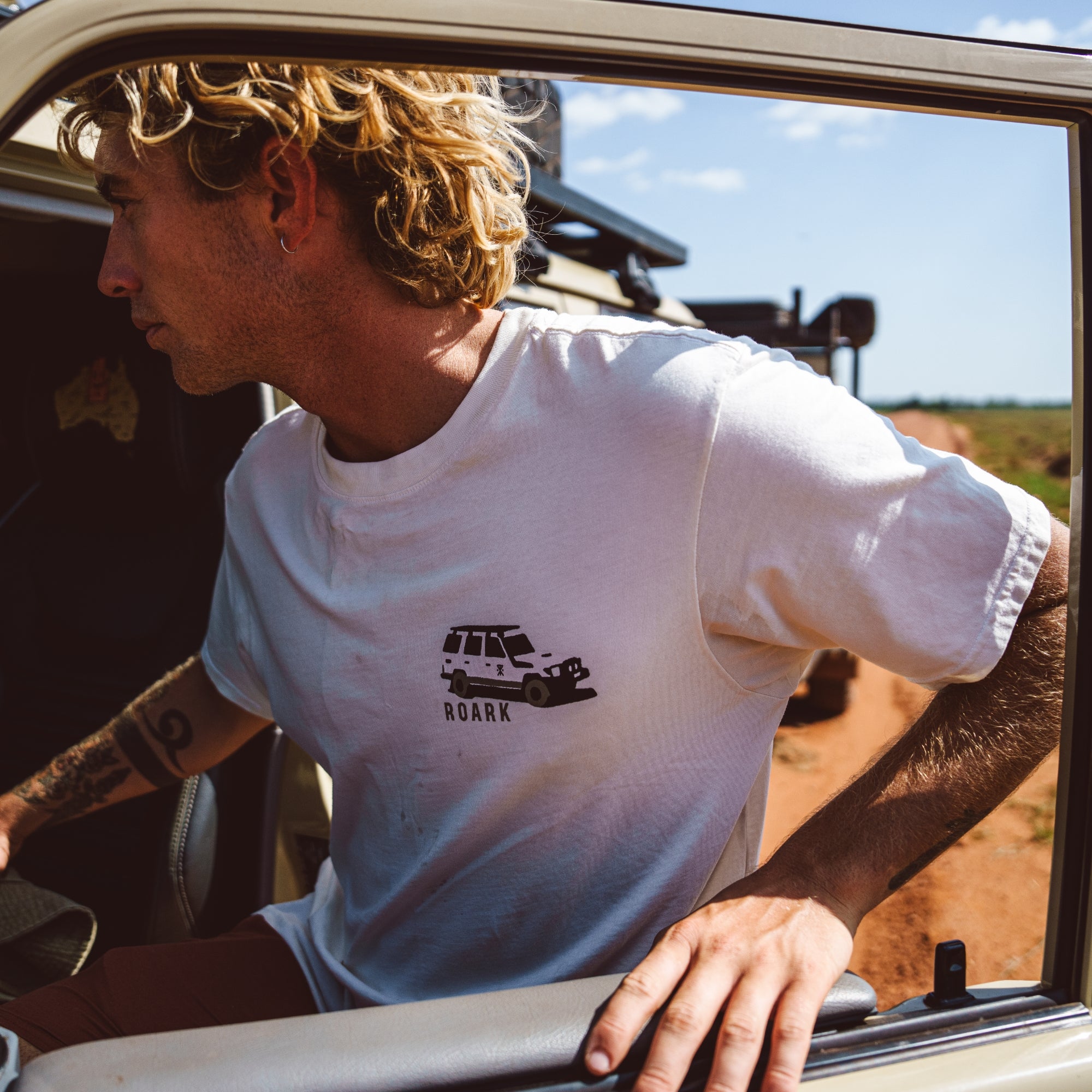 Das Roark's Expeditions Tee ist eine Hommage an das unermüdliche Streben nach Abenteuern und den Geist der Besessenen. Dieses cremefarbene T-Shirt ist aus hochwertiger, leichter Baumwolle gefertigt und kombiniert unvergleichlichen Komfort mit kühner Kunstfertigkeit.